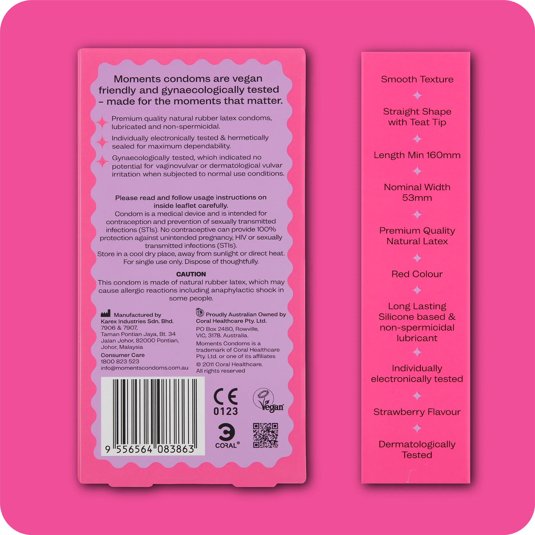 Tease your partner’s senses with a rich, fruity blast of flavours. Sensually flavoured with juicy strawberries, Moments Strawberry Condoms are perfect for a delicious sexual indulgence.